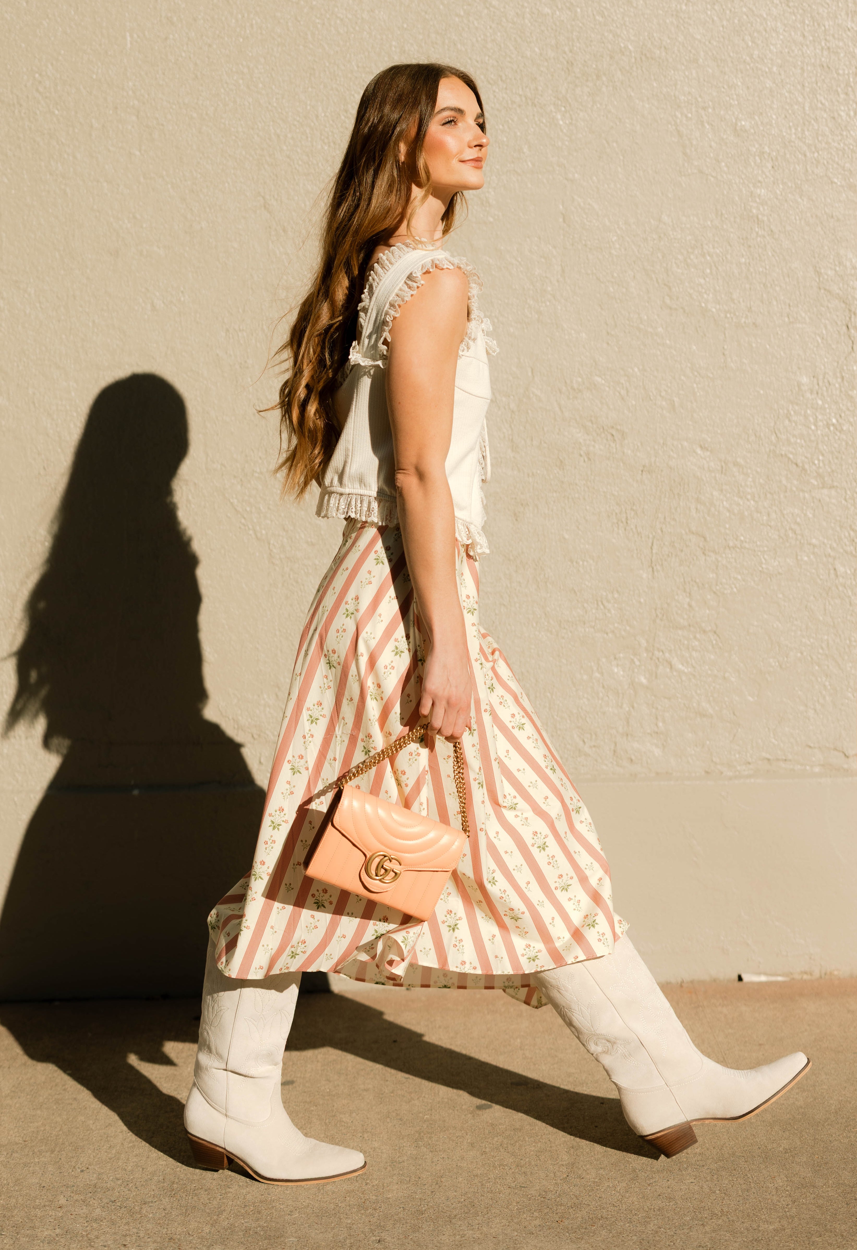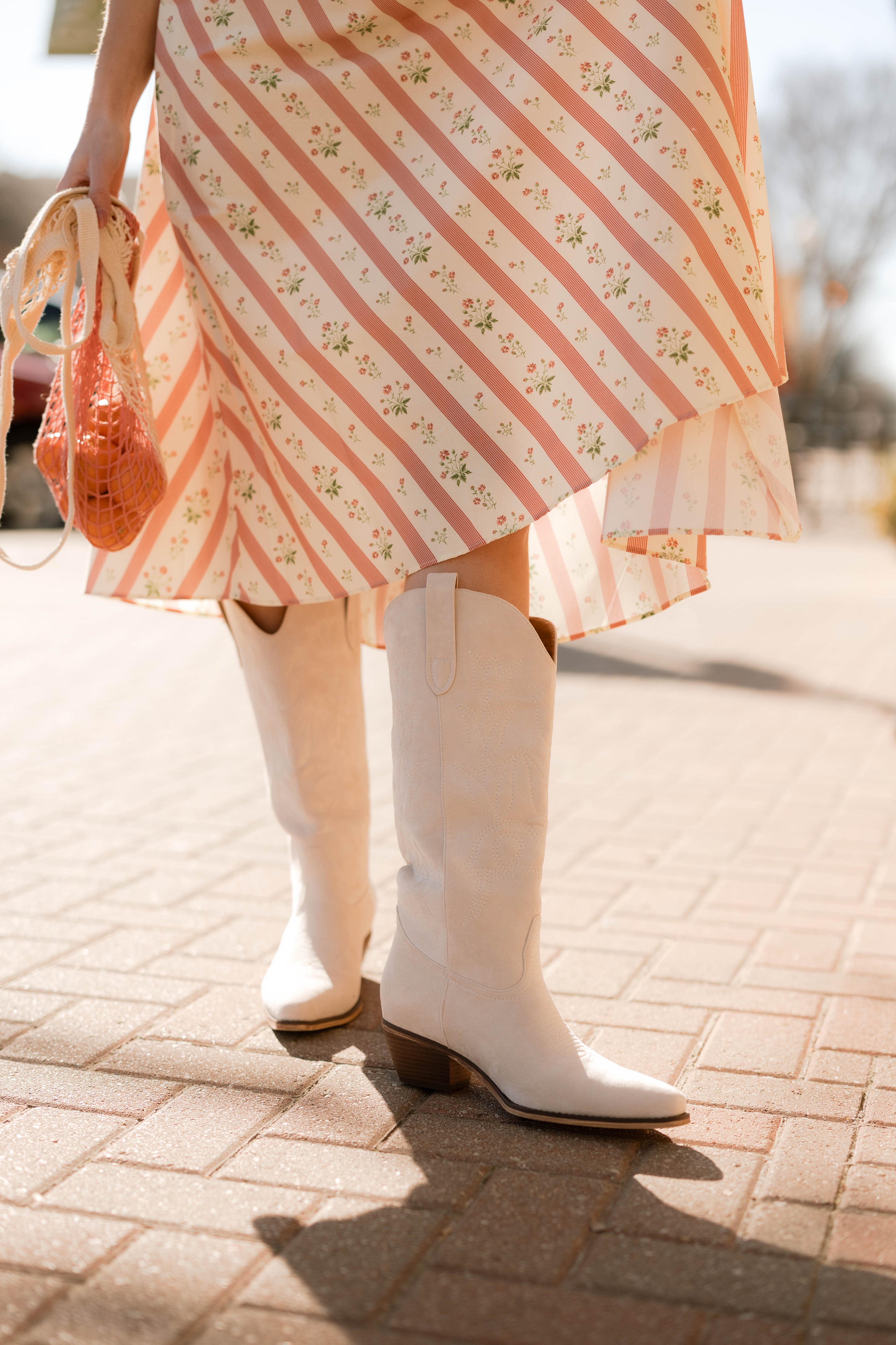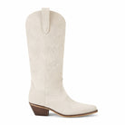 Introducing The Emmylou in Bone- the perfect boot for every season. Our tall, bone color vegan suede boots are the perfect choice! Made from high-quality material, these boots are both fashionable and durable. The classic western design features a pointed toe and tulip stitching, making them perfect for both casual and dressy occasions.